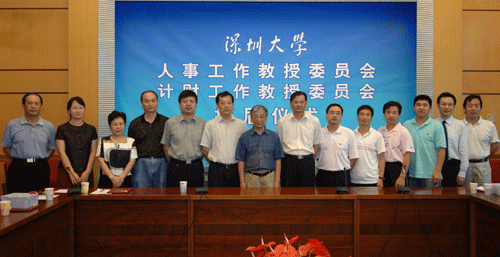 200806-16  我校兩個教授委員會換屆6月13日下午,第二屆深圳大學人事工作教授委員會和計財工作教授委員會的換屆儀式在我校國際會議廳D廳舉行。深圳大學黨委書記江潭瑜、校長章必功和兩個教授委員會第一屆和第二屆全體委員參加儀式。 深圳大學計財工作教授委員會和人事工作教授委員會自2006年4月成立以來,歷時兩年工作,取得初步成效。根據《深圳大學計財工作教授委員會規程》和《深圳大學人事工作教授委員會規程》,首屆教授委員會任...