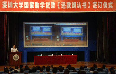 200806-13  我校舉行2008屆貸款畢業生《還款確認書》簽訂儀式6月11日下午,我校2008屆貸款畢業生《還款確認書》簽訂儀式在國際會議廳隆重舉行。深圳平安銀行深圳深大支行行長丘紅兵,我校副校長李永華,學生處負責人及各學院輔導員、全體獲貸畢業生470余人出席了儀式。 我校國家助學貸款申請人數逐年上升,畢業生還款情況良好,截至2008年5月,我校在平安銀行貸款的512名畢業生中已有220名還清了國家助學貸款,還清貸款率高達42.9%。學生處副處長黃少玲介紹了我校國家...