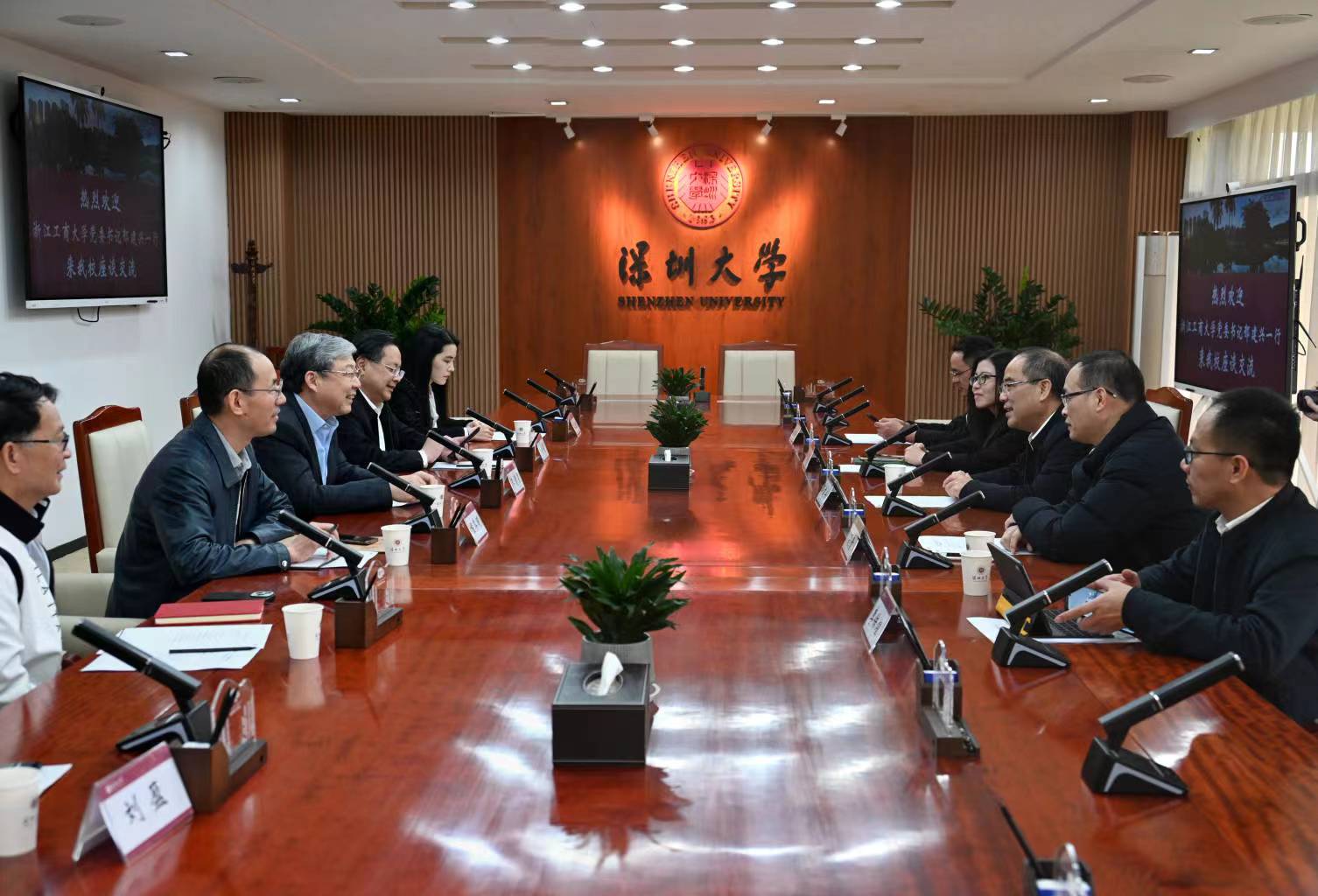 3月7日,浙江工商大學(xué)黨委書(shū)記郁建興、副校長(zhǎng)顧青一行到深圳大學(xué)調(diào)研,深圳大學(xué)黨委書(shū)記李清泉、副校長(zhǎng)徐晨會(huì)見(jiàn)來(lái)賓,雙方在粵海校區(qū)匯元樓401室舉行座談。徐晨主持座談會(huì)。
