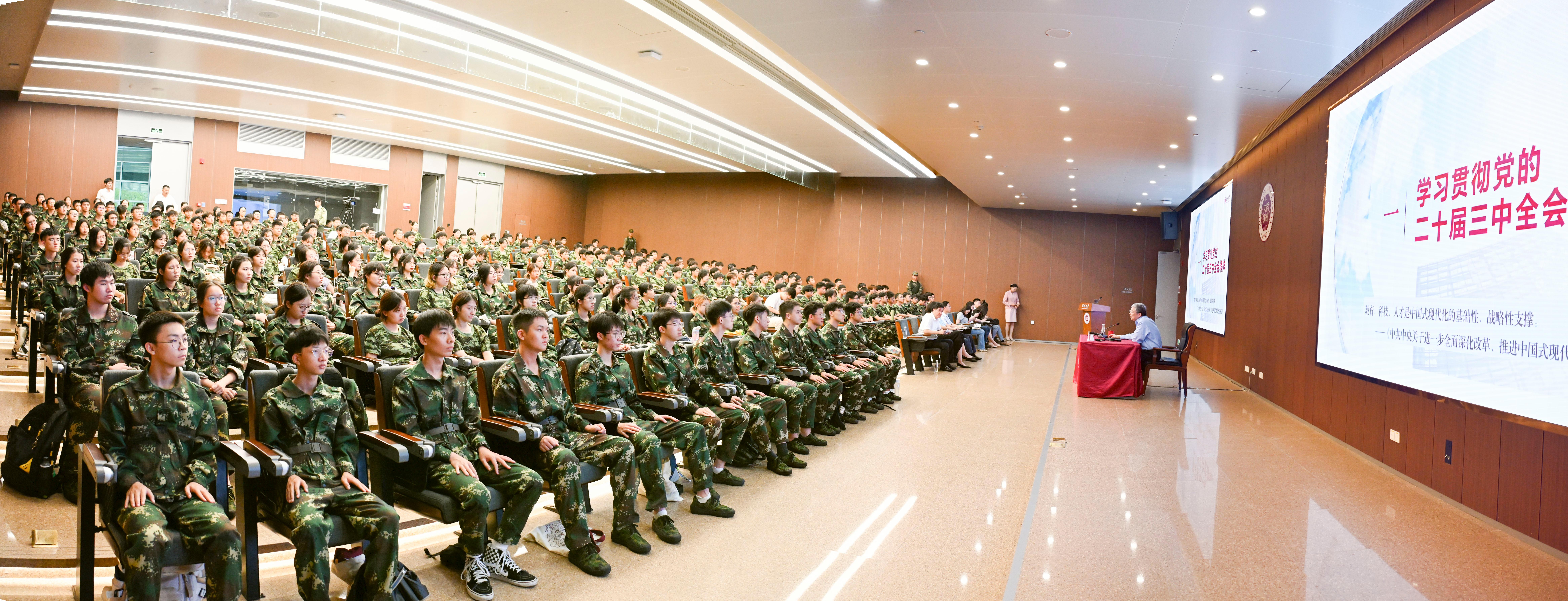 9月24日下午,深圳大學黨委書記、中國工程院院士李清泉以《擔復興精神、傳特區精神、書深大篇章》為題,在麗湖校區啟明樓報告廳為同學們開講2024年秋季學期“思政第一課”。副校長李永華主持講座,學校相關職能部門、學院負責人以及正在參加軍訓的大一新生代表共240余人現場聆聽。