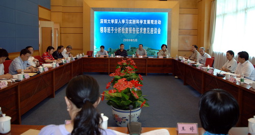5月27日下午,深圳大學(xué)深入學(xué)習(xí)實(shí)踐科學(xué)發(fā)展觀活動領(lǐng)導(dǎo)班子分析檢查報(bào)告征求意見座談會在國際會議廳D廳召開。學(xué)校部分學(xué)院和部處中層干部、教授委員會和教代會常委代表、人大代表、政協(xié)委員、民主黨派和無黨派人士、師生代表等參加座談會,校黨委書記江潭瑜、黨委副書記陶一桃聽取了大家的意見。省委第二批深入學(xué)習(xí)實(shí)踐科學(xué)發(fā)展觀活動第十一指導(dǎo)檢查組組長郭斯淦參加了座談會。 牛憨笨、蘇東斌、李景鎮(zhèn)、...