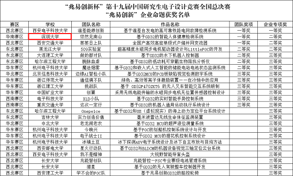 電子與信息工程學院鐘世達、張沛昌老師擔任指導教師,張明福、劉博林兩位碩士研究生組成的隊伍“悠然見南山”的參賽項目《基于GD32的智能人體健康檢測系統》榮獲全國總決賽技術競賽團隊一等獎,以及“兆易創新”企業命題二等獎。