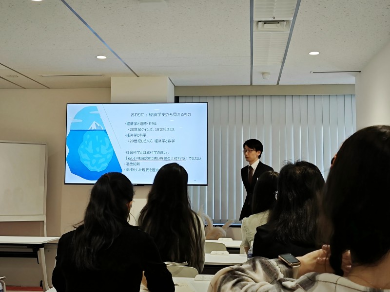 田中教授以其深厚的學術功底和生動的講解方式,對經濟史、經濟學史進行了區分,即經濟史是研究經濟社會發展的歷史,經濟學史是研究經濟學理論、經濟學發展脈絡的歷史,二者相互區別相互聯系。田中教授認為《道德情感論》代表了亞當·斯密的核心思想,盡管市場機制能夠促進經濟效率,但道德和倫理才是社會和諧的重要基石,維持社會秩序的穩定才是經濟發展的關鍵。此外,田中教授還深入剖析了近代景氣循環論的理論基礎與實踐應用,使同學們對經濟周期波動的原因、特征及應對策略有了更加清晰的認識。