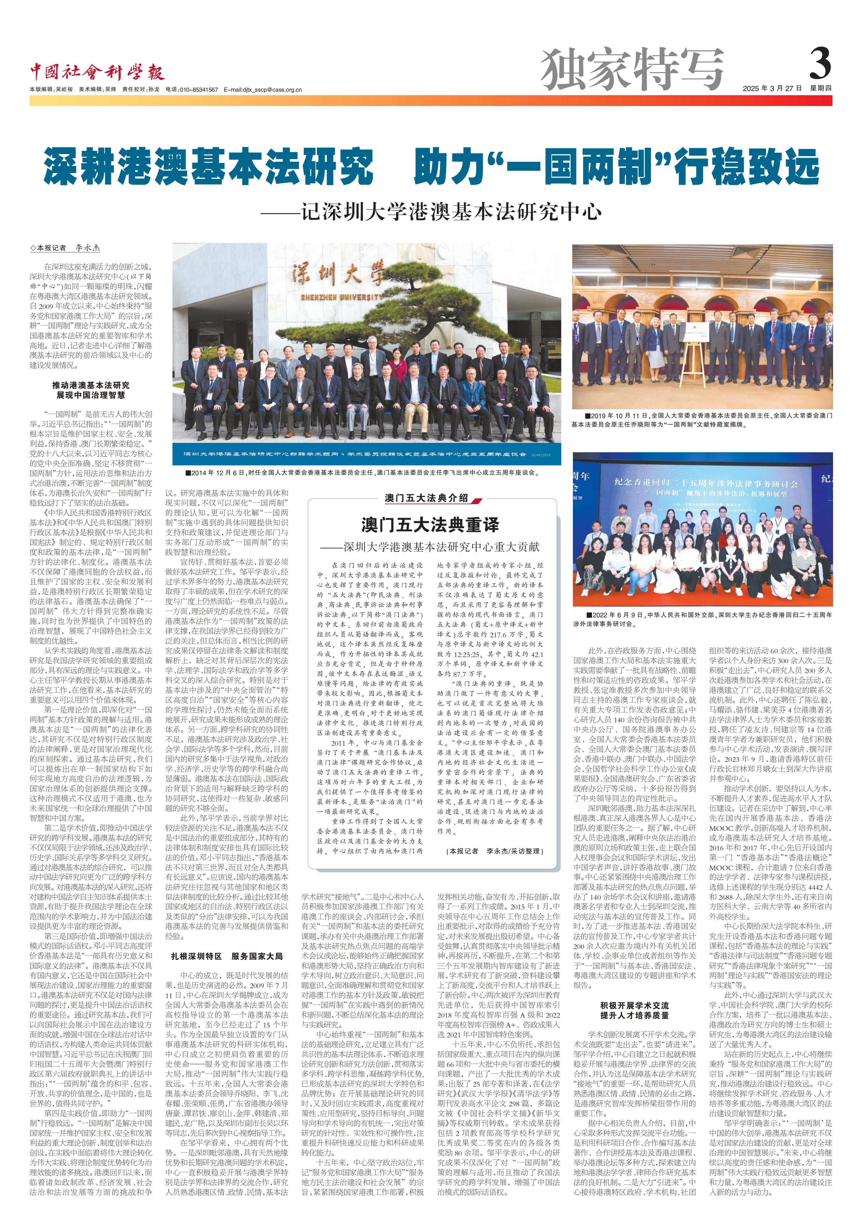 深耕港澳基本法研究 助力“一國(guó)兩制”行穩(wěn)致遠(yuǎn)——記深圳大學(xué)港澳基本法研究中心