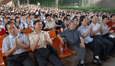5月28日下午,我校演會中心座無虛席。中國科學院院士、原華中理工大學校長楊叔子教授應邀為我校及附中的師生做了一場《踏平坎坷,成人成才》的精彩報告。學校黨委書記江潭瑜,校長章必功,副校長劉洪一、邢鋒及各單位負責人、學生代表1600余人,聆聽了報告會。