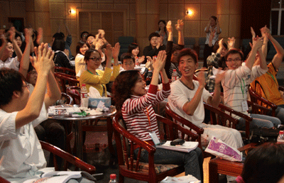 此次活動(dòng)得到了來自各個(gè)學(xué)院、各個(gè)年級(jí)的100名大學(xué)生干部的積極響應(yīng)。錢維德先生采取了全官能、多感官深層體驗(yàn)訓(xùn)練系統(tǒng)引導(dǎo)學(xué)子們進(jìn)行個(gè)人生命價(jià)值的探索、以及生命內(nèi)涵的省思。錢維德先生還教會(huì)了學(xué)子們?nèi)绾伟l(fā)自內(nèi)心的感謝他人,并引導(dǎo)其走出怯懦,給予身邊的人擁抱與微笑。