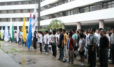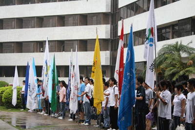 5月19日早晨7點半,我校舉行升國旗儀式,降半旗,沉痛哀悼在四川汶川特大地震中的遇難者。章必功校長、李永華副校長,校辦、團委、學生處等部門負責人、各學院學生代表近500人參加了升旗儀式。