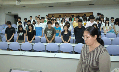 儀式中,在場師生神情肅穆,在心中默默地哀悼遇難者,祝福幸存者。