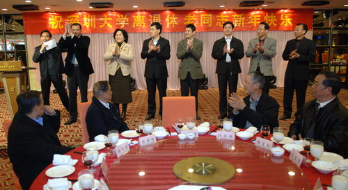 1月8日上午,我校在圖書館二樓會議室、國際會議廳報告廳舉行了深圳大學離退休老干部2009年新春座談會、聯歡活動。校黨委書記江潭瑜、副書記陶士平、陶一桃,副校長阮雙琛、邢鋒、李永華、杜寵彪、李鳳亮出席了座談會和聯歡活動。學校退休校領導、離休老干部、享受政府特殊津貼專家20余人參加了座談會。