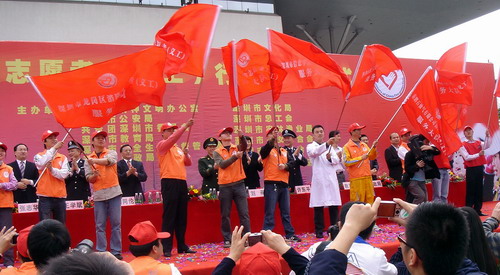 3月5日,“深圳市消防志愿者(義工)行動啟動儀式”在深圳體育館拉開序幕,深圳市首支消防志愿者(義工)隊伍――深圳大學消防志愿者(義工)服務大隊正式成立。