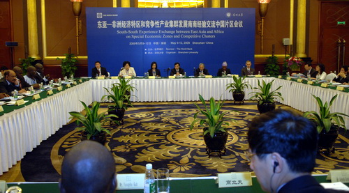 由世界銀行主辦,深圳大學(xué)承辦的“東亞與非洲經(jīng)濟(jì)特區(qū)及競爭性集群南南合作經(jīng)驗(yàn)交流中國片區(qū)會議”于5月10日在深圳舉行。上午9時(shí),會議開幕式在深圳凱賓斯基酒店B廳舉行。深圳市政府副秘書長徐安良,深圳大學(xué)校長章必功、黨委副書記陶一桃,世界銀行非洲區(qū)金融與私營部門發(fā)展局局長馬麗?簡?龍依、世界銀行學(xué)院首席專家亞太區(qū)協(xié)調(diào)員康立飛,非洲國家代表團(tuán)、中國發(fā)改委官員、深圳市財(cái)政局官員、深圳大學(xué)中國經(jīng)濟(jì)特區(qū)研究中心教師出席開幕式。世界銀行金融與私營部門經(jīng)濟(jì)學(xué)家道格拉斯?曾智華、深圳大學(xué)黨委副書記陶一桃共同主持開幕式。