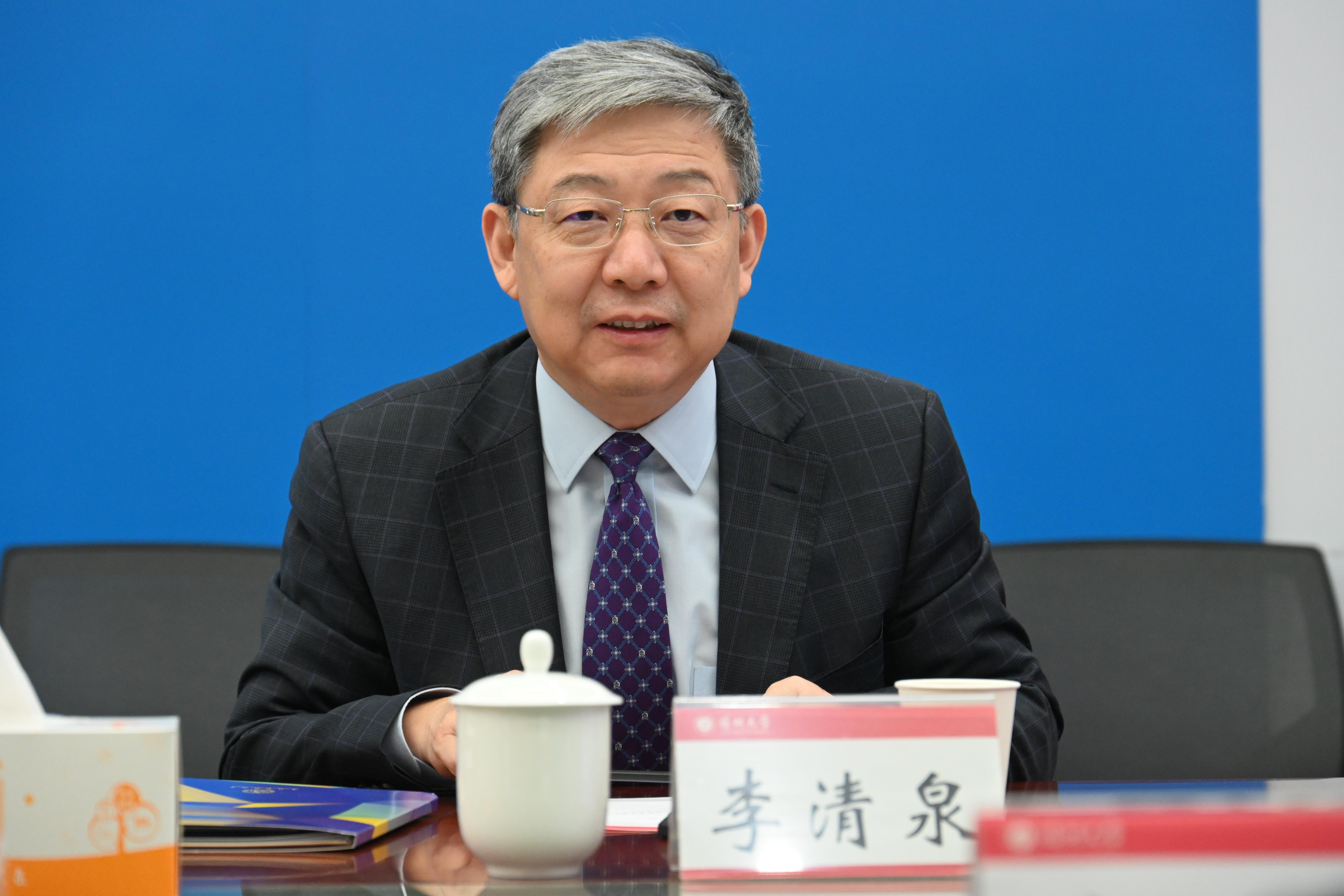 李清泉對李行偉一行的到訪表示熱烈歡迎,并從學校人才培養、師資隊伍、科學研究、學科建設、社會服務等方面介紹了深圳大學的建設發展情況。他表示,深圳大學建校38年來不斷探索創新,形成了“特區大學、窗口大學、實驗大學”的辦學特色,培養了30萬創新創業人才,95%以上扎根粵港澳大灣區,為特區發展和國家現代化建設做出了重要貢獻。學校不斷深化科研體制改革,科研項目與經費增長顯著,學科高峰加速崛起態勢明顯,綜合排名持續躍升。特別是進入新時代以來,學校實施高水平大學建設發展戰略,成為內地進步最快的大學之一,綜合實力得到全面快速提升,創新創業人才培養、人事管理體制等領域的改革走在全國前列。深圳大學擁有良好的創新創業生態圈,通過深度的校地合作、校企合作、產學研合作、產教融合等,在科研創新和科技成果轉化領域持續發力,為大灣區人才培養、科研創新、文化傳播和社會服務等領域提供有力支撐。李清泉表示,當前,深圳大學積極服務粵港澳大灣區和深圳先行示范區建設等國家重大戰略需求,加快創建世界一流創新型大學,為建設新時代中國特色社會主義標桿大學而努力。