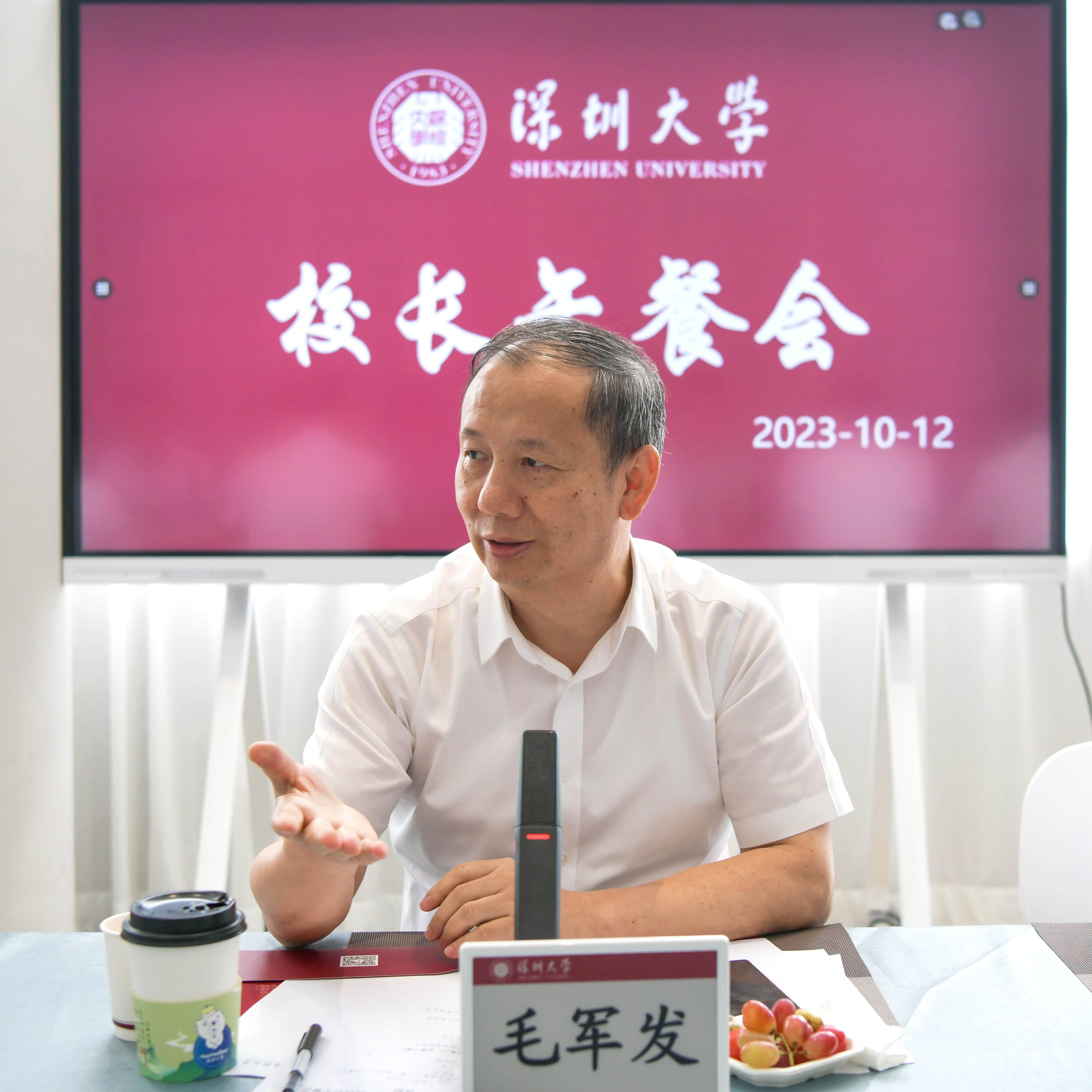 10月12日,本學(xué)期首場校長午餐會在麗湖校區(qū)采薇餐廳舉行。深圳大學(xué)校長毛軍發(fā)、副校長李永華,黨政辦、團(tuán)委、教務(wù)部、學(xué)生部、麗湖校區(qū)辦等相關(guān)職能部門負(fù)責(zé)人以及醫(yī)學(xué)部、經(jīng)濟(jì)學(xué)院、法學(xué)院等學(xué)院(部)負(fù)責(zé)人出席午餐會。李永華主持午餐會。