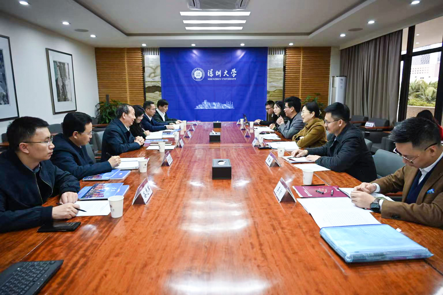 3月1日,深圳市前海合作區黨工委副書記梁珂一行來到深圳大學調研,全國政協委員、廣東省人大常委會財經咨詢專家、廣東高科技產業商會會長王理宗陪同調研。深圳大學校長毛軍發、副校長張曉紅會見梁珂一行,雙方在匯元樓301會議室舉行座談會。張曉紅主持會議。