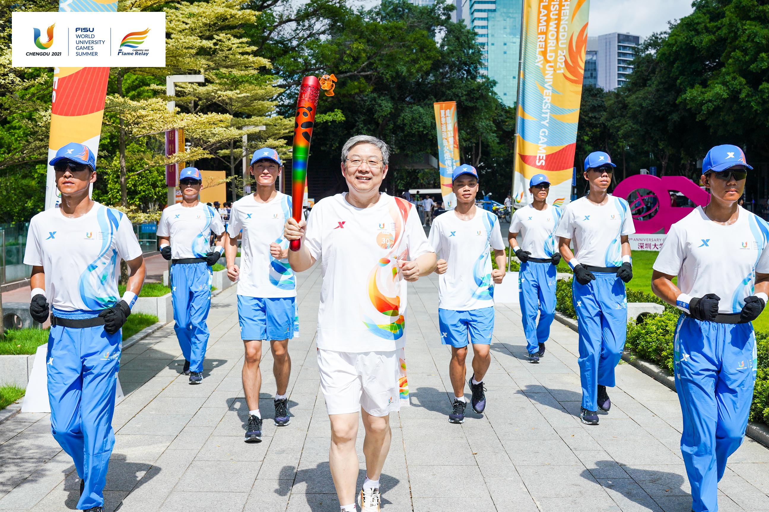 6月20日上午,成都第31屆世界大學(xué)生夏季運(yùn)動(dòng)會(huì)深圳站火炬?zhèn)鬟f在深圳大學(xué)舉行。