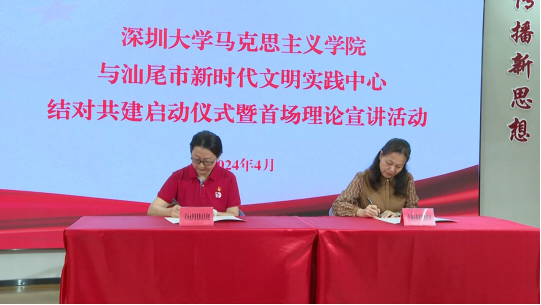 啟動儀式上,深圳大學(xué)馬克思主義學(xué)院與汕尾市新時代文明實踐中心簽訂結(jié)對共建合作協(xié)議,充分發(fā)揮重點馬克思主義學(xué)院在理論研究和宣傳闡釋方面的示范引領(lǐng)作用,共同推動習(xí)近平新時代中國特色社會主義思想深入基層、深入群眾、深入人心。