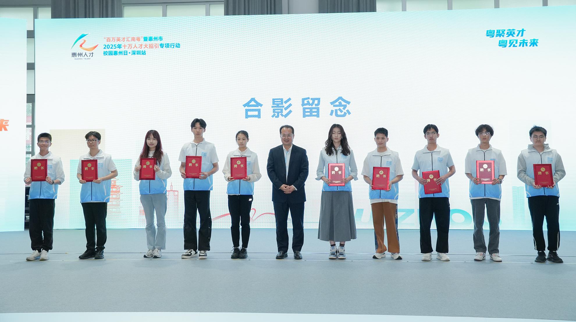 活動上,惠州市方向深圳大學十位在校學子頒授“惠州校園引才大使”證書,并與與會領導共同合影留念。