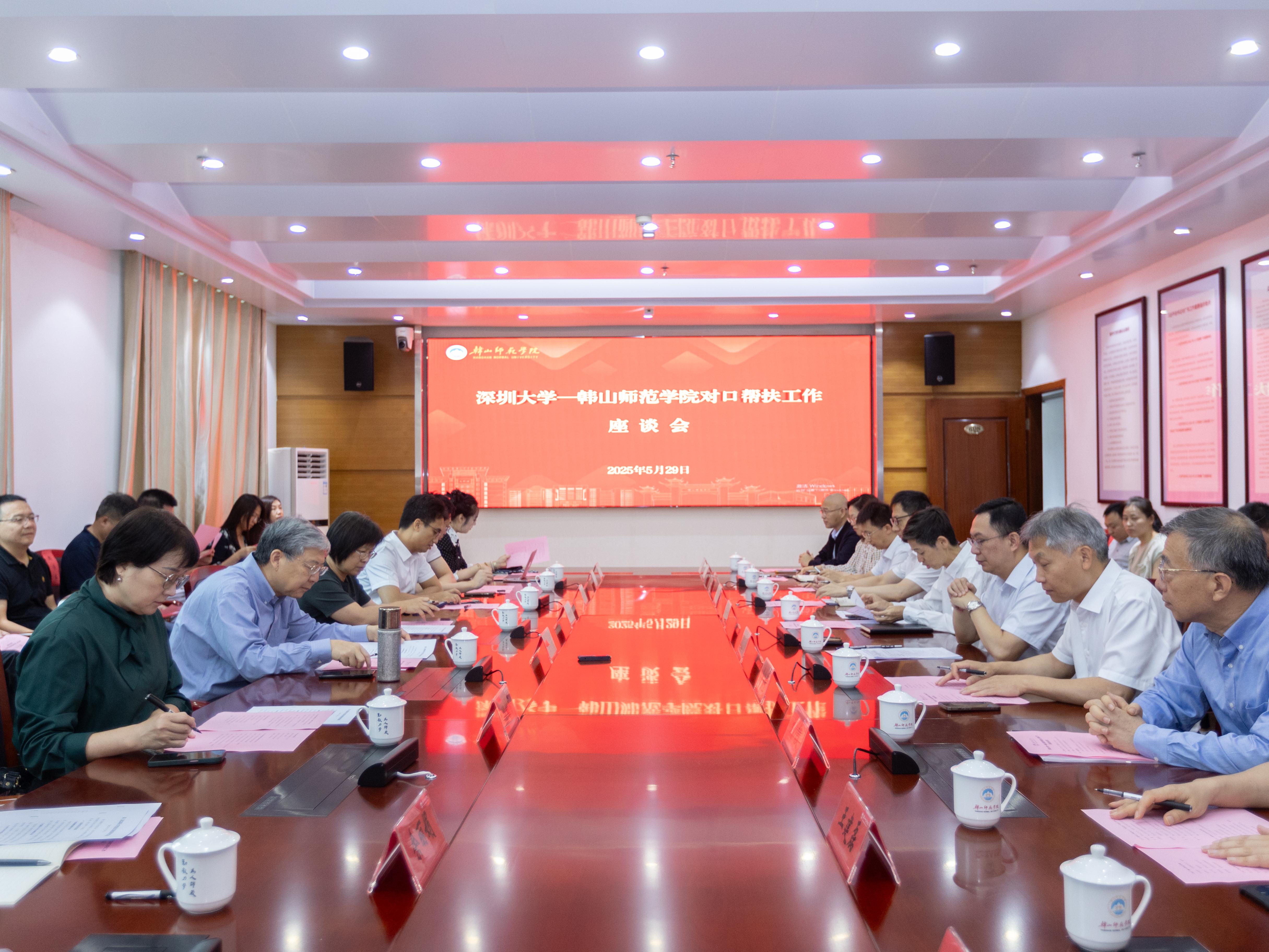 李清泉回顧兩校六年幫扶情誼,并表示,深大始終秉持“實(shí)事求是、注重實(shí)效”原則,力爭(zhēng)幫助韓師推動(dòng)新發(fā)展。他高度肯定幫扶工作隊(duì)提升校園空間效能、干部掛職機(jī)制培育8名青年骨干、科研導(dǎo)師團(tuán)助力省級(jí)平臺(tái)建設(shè)等工作成效。面對(duì)韓師“申博改大”新目標(biāo),李清泉提出要在三方面精準(zhǔn)發(fā)力:一是嚴(yán)把新增碩士點(diǎn)質(zhì)量關(guān),推動(dòng)規(guī)模從3個(gè)向10個(gè)突破;二是強(qiáng)化科研反哺教學(xué),以省級(jí)實(shí)驗(yàn)室建設(shè)支撐研究生培養(yǎng);三是創(chuàng)新歷史校園改造模式,用最小投入讓老建筑煥發(fā)現(xiàn)代大學(xué)氣息。他表示,深大黨委將對(duì)韓師提出的需求進(jìn)行專題研究后,盡快全力落實(shí)。