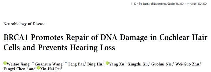 醫(yī)學(xué)部裴新海教授團(tuán)隊(duì)在Journal of Neuroscience發(fā)表BRCA1修復(fù)毛細(xì)胞DNA損傷研究成果