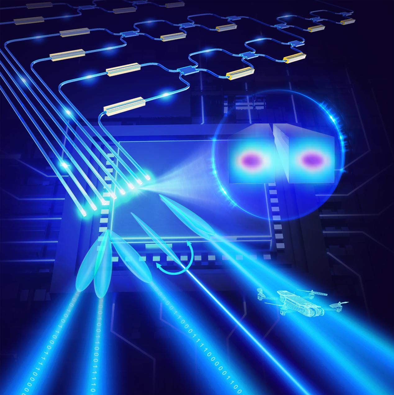 圖1 同時實現大視場、高旁瓣抑制比和復雜波束賦形功能的光學相控陣概念圖